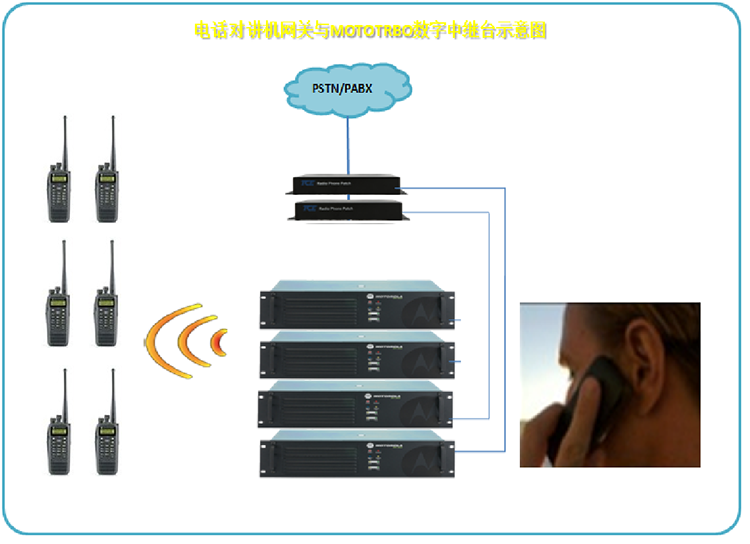 無線對講系統(tǒng)中,XIR R8200數(shù)字中繼臺連接對講機(jī)電話網(wǎng)關(guān),通過對講機(jī)電話網(wǎng)關(guān)接入PBX程控交換機(jī),通過程控交換機(jī)與有線電話,手機(jī)互通,滿足各部門的有無線通信互通。