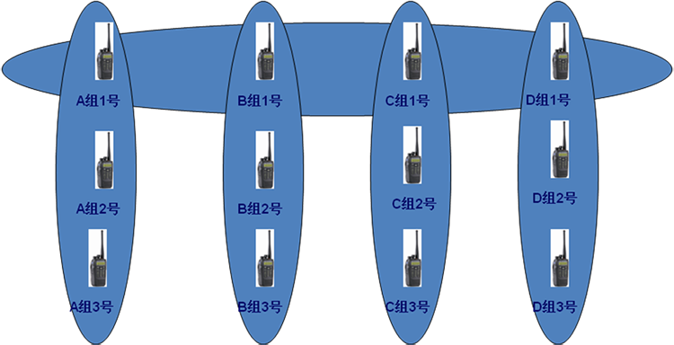 系統(tǒng)規(guī)劃可根據(jù)終端用戶數(shù)量任意設(shè)置多個通話組,各個通話組按照各部門相應(yīng)人員進(jìn)行編制,并對各個組的組長進(jìn)行權(quán)限配置。
