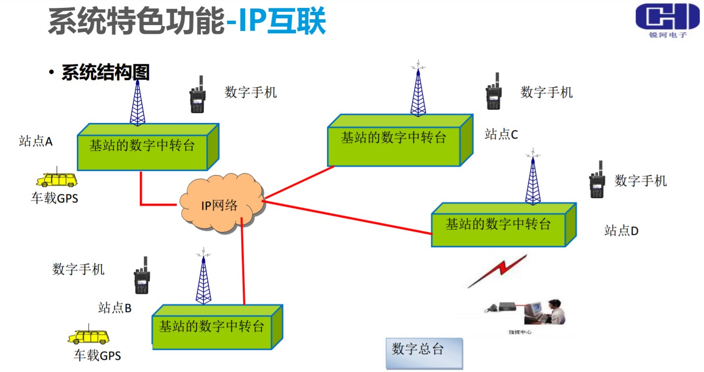 ? 系統(tǒng)將多個(gè)中繼臺(tái)通過IP網(wǎng)絡(luò)連起來,形成大面積的覆蓋,解決