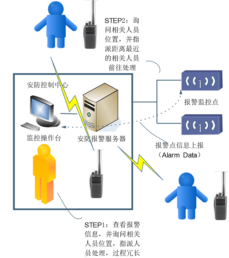 需分為兩步:第步是先查看確認(rèn)報(bào)警,第二步呼叫相關(guān)人員,確認(rèn)其位置,指派距離較近的人員前往處理。