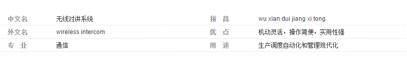 一種雙向移動通信工具,在不需要任何網(wǎng)絡支持的情況下,就可以通話,沒有話費產(chǎn)生,適用于相對固定且頻繁通話的場合