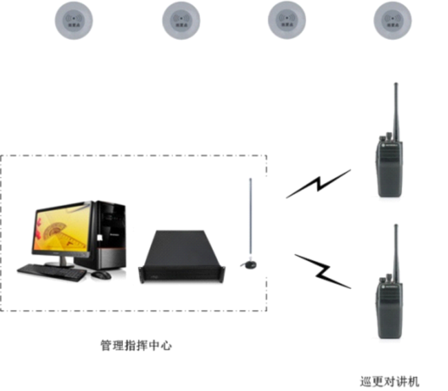 本系統(tǒng)采用了射頻身份識別(RFID)技術(shù)的較新成果,實現(xiàn)了在對講機內(nèi)部嵌入射頻讀卡模塊。利用MOTOTRBO數(shù)字對講機的數(shù)據(jù)傳輸能力,實現(xiàn)常規(guī)在線巡更的功能。