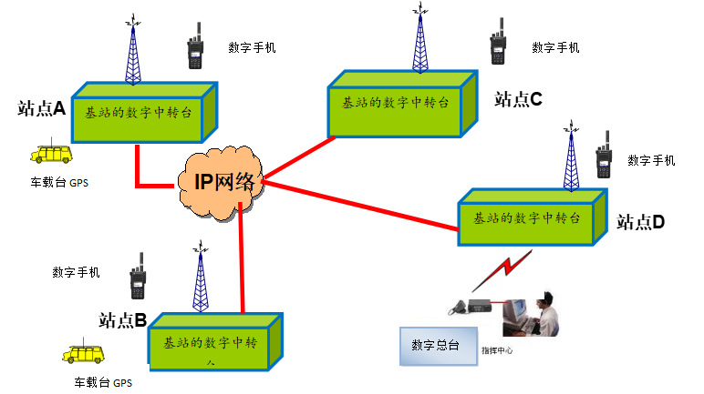 系統(tǒng)將多個中繼臺通過IP網(wǎng)絡(luò)連起來,形成大面積的覆蓋,解決了需要大面積覆蓋的用戶的要求。但經(jīng)過IP互連的系統(tǒng)的用戶容量相當于個單中繼臺的系統(tǒng)的用戶容量。